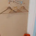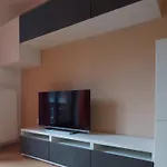 The apartment is also furnished with a sofa set and a work desk. Beds fitted with plump-down pillows are at guests' disposal. Here you'll find comforts like a separate toilet and a shower. Moreover, there are a hair dryer, towels, and slippers as well.